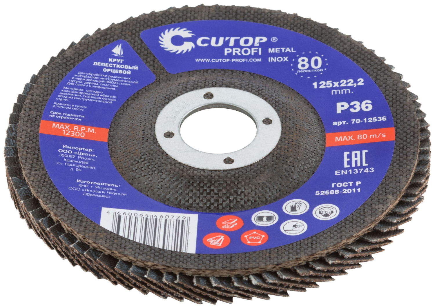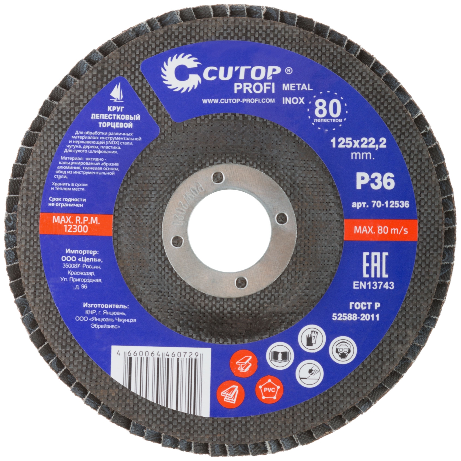 Круг лепестковый торцевой Cutop Profi (80 лепестков) 125х22,2 мм Р36