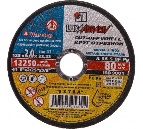 Круг отрезной мет. 125х2,0х22 мм A 36 S BF 80 Луга