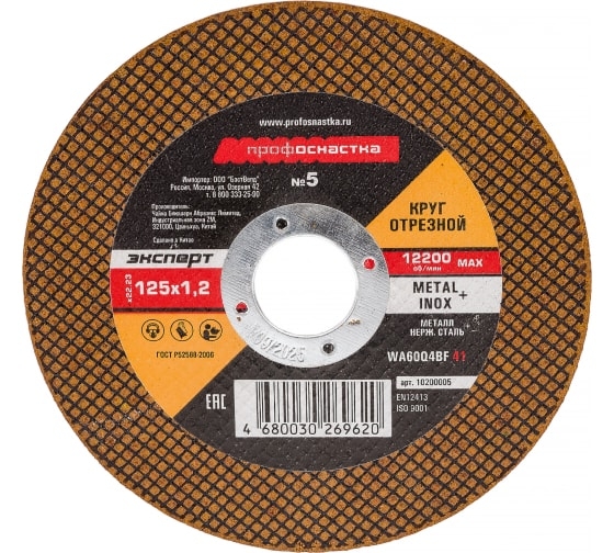 Отрезной круг №5 125*1,2*22 мм тип 41 ТМ Профоснастка предназначен для использования на УШМ. Обеспечивает мягкий рез и имеет высокий коэффициент шлифования (более 1,8) – показатель долговечности ресурса резания. Так же, с учетом цены отрезного диска и его ресурса, низкий показатель стоимости одного реза является наиболее выгодным для сравнения при интенсивном или индустриальном применении. Рекомендуется для резания углеродистых и нержавеющих сталей.