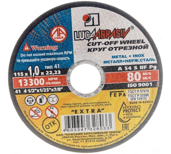 Круг отрезной мет+нерж 115х1,0х22 мм A 54 S BF 80 Луга