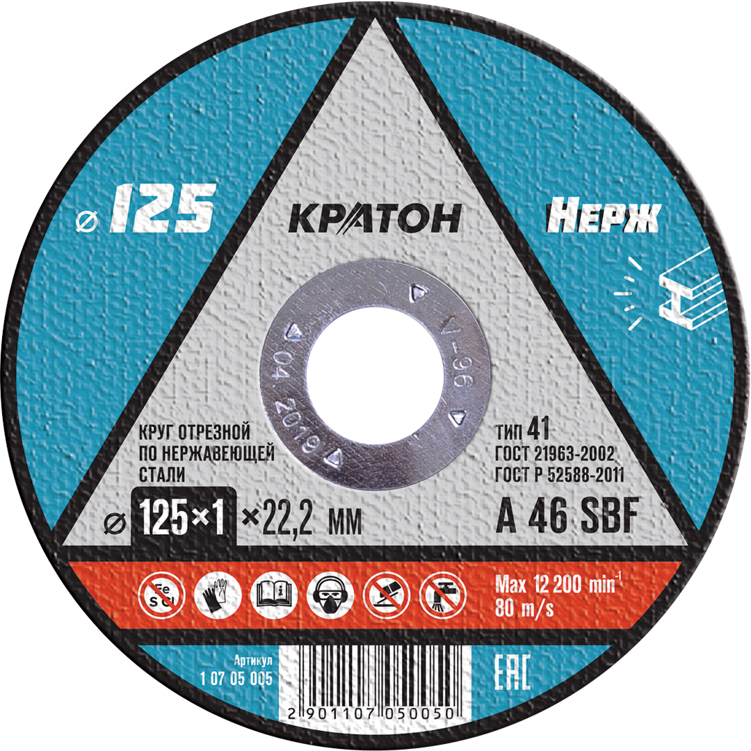 | Круг отрезной нерж. 125х1,2х22,2 мм A46SBF Кратон | 1 07 05 006 | 1 шт. |