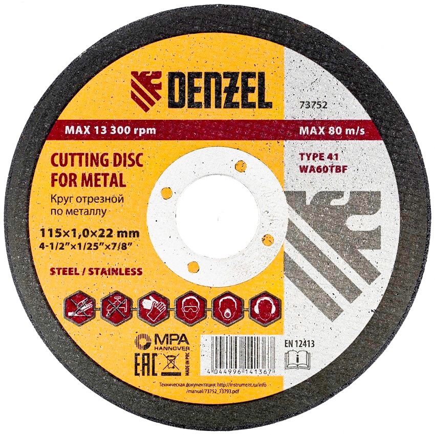 Круг отрезной по металлу 115х1,0х22,2 мм WA60TBF Denzel