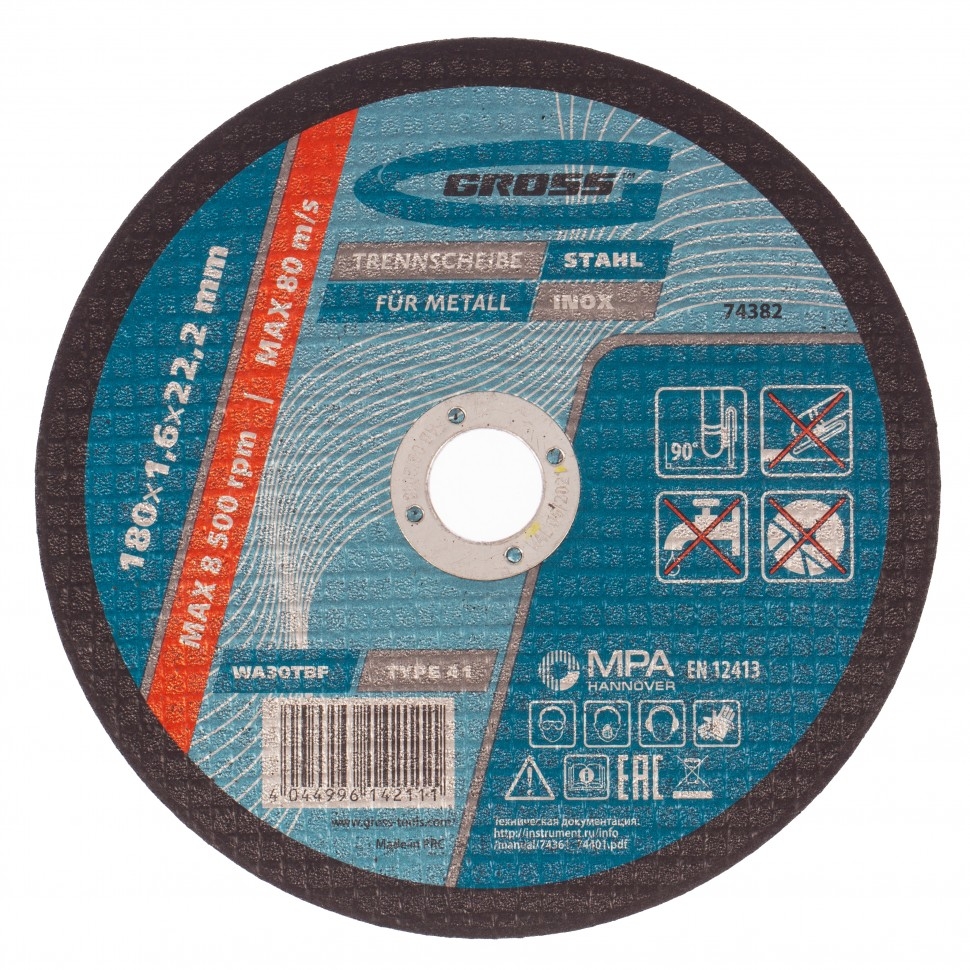 Круг отрезной по металлу 180х1,6х22,2 мм WA46TBF Gross