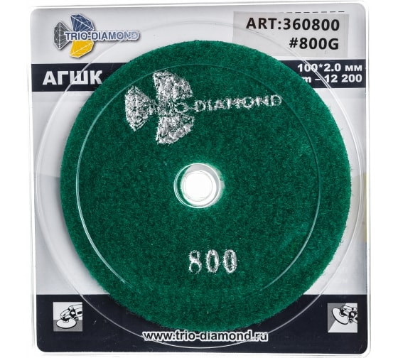 Алмазный гибкий шлифовальный круг Черепашка 100 № 800 TRIO-DIAMOND 360800 предназначен для ручных шлифовальных машин. Применяется для сухой обработки бетонных конструкций, камня, изделий из мрамора и гранита. Круг изготовлен на гибкой основе, имеет алмазное напыление и крепится при помощи липучки.