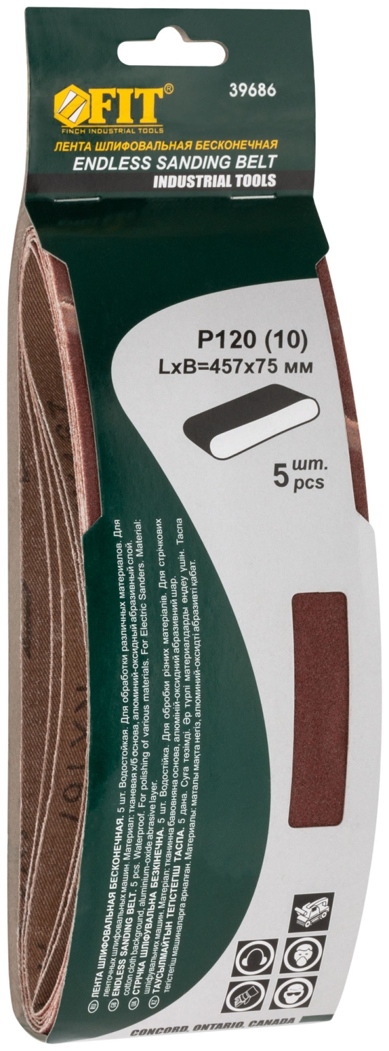 Ленты шлифовальные бесконечные, водостойкие, тканевая основа, 75 х 533 мм, 5 шт. Р 120 39696 1 шт.