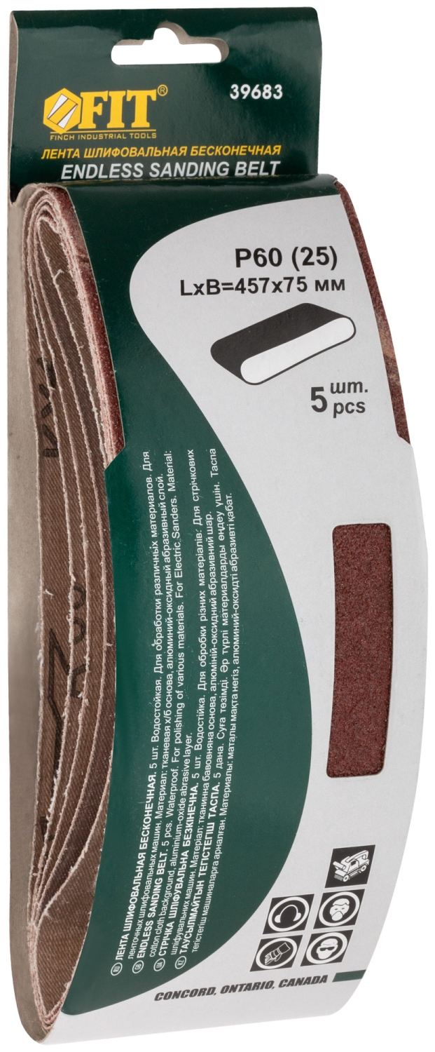 Ленты шлифовальные бесконечные, водостойкие, тканевая основа, 75 х 457 мм, 5 шт. Р 60