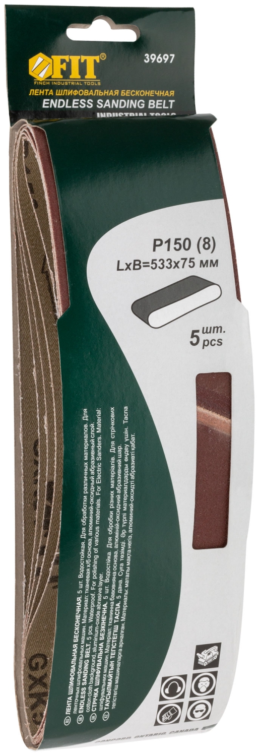 Ленты шлифовальные бесконечные, водостойкие, тканевая основа, 75 х 533 мм, 5 шт. Р 150