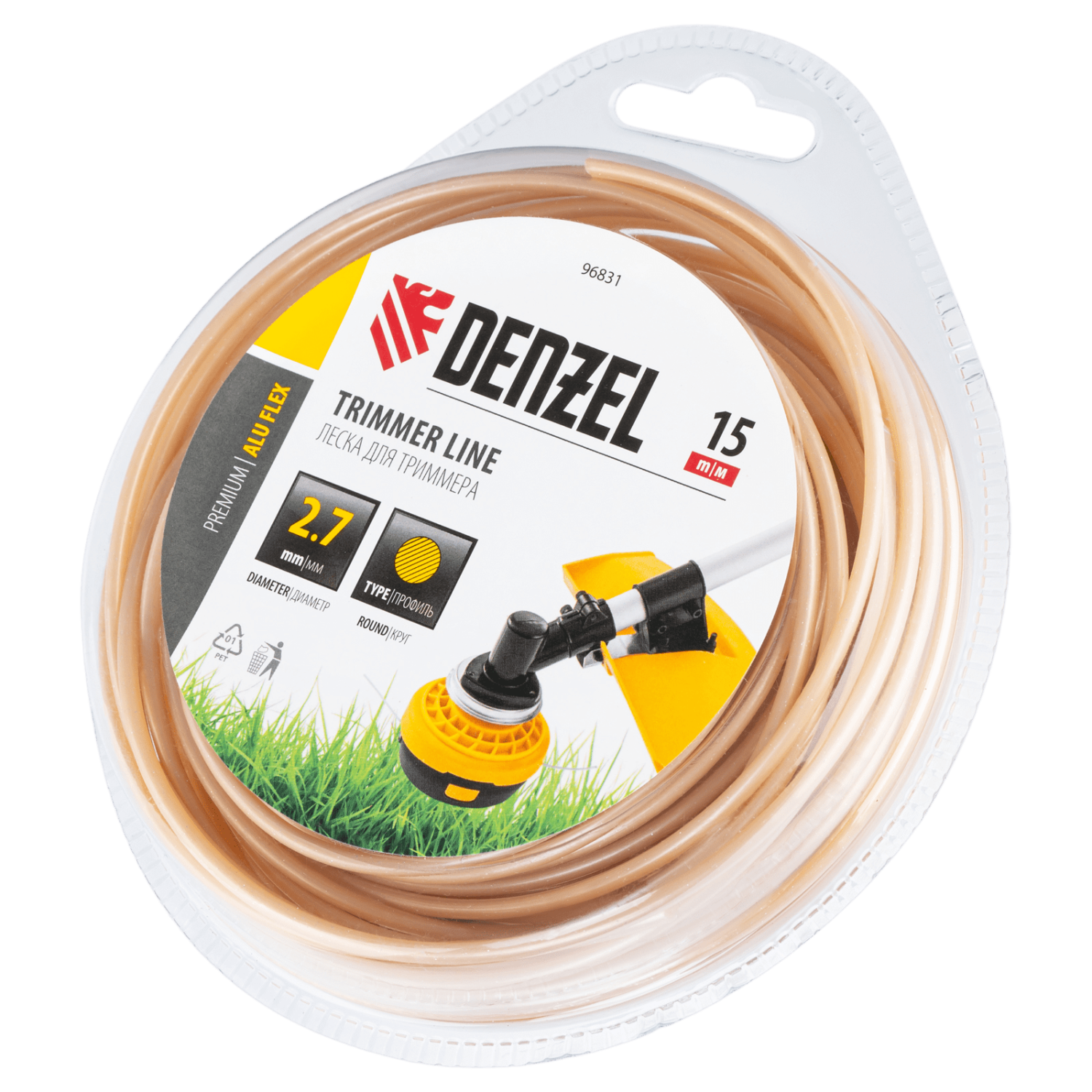 Леска для триммера армир.алюминием круглая 2,7мм х 15м блистер ALUFLEX Denzel