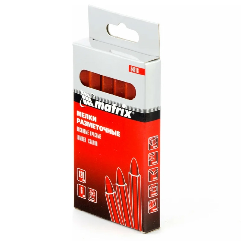 Мелки разметочные 120 мм восковые, красные 6 шт, Matrix
