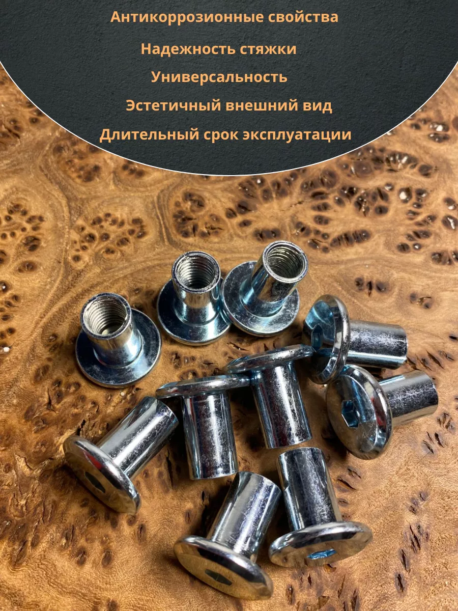 Мебельная гайка Эриксона М8 с плоской головкой, 10 шт.