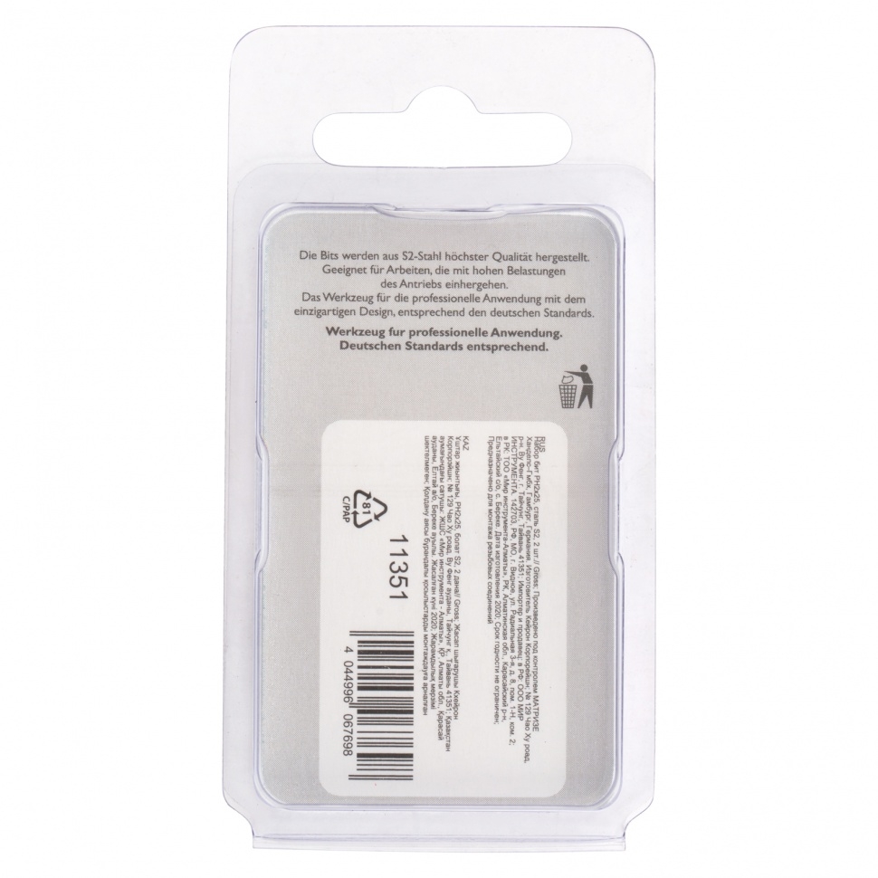 Набор бит Gross PH2х25 арт. 11351 состоит из 2-х наиболее востребованных крестообразных насадок с хвостовиком 1/4" и предназначен для шуруповертов и отверток-адаптеров. Биты используются при монтаже и демонтаже резьбовых соединений: большинства саморезов по дереву, шурупов и др. За счет оптимальной геометрии биты способны ввинтить и извлечь большое количество крепежа без потери рабочих свойств. Биты сделаны из японской легированной стали S2 твердостью 54-58 HRC, что повышает их износостойкость и увеличивает срок службы. Высокая точность исполнения шлица и максимальный контроль качества на производстве в Тайване позволяют добиться выверенности каждой биты и предотвратить проскальзывание рабочей части в головке крепежа. Намагниченный шлиц облегчает работу и позволяет направлять шуруповерт с насаженным крепежом одной рукой, а другой придерживать закрепляемую деталь. Никелированное покрытие защищает биты от коррозии. Каждая бита защищена от подделок — об этом говорит цветное кольцо с логотипом ТМ G