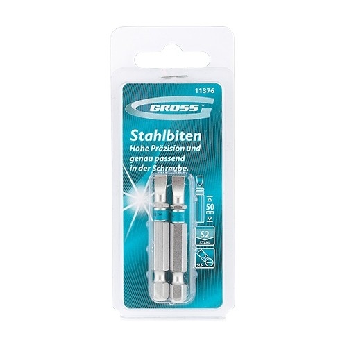 Набор бит Gross SL5,0х50 арт. 11376 включает 2 сменные насадки для шуруповертов и отверток-адаптеров с присоединительным шестигранником 1/4". Биты со шлицами «минус» размером 5 мм применяются при монтаже и демонтаже резьбовых соединений: винтов, саморезов и др. Биты сделаны из японской легированной стали S2 твердостью 54-58 HRC, что повышает их износостойкость и увеличивает срок службы. Высокая точность исполнения шлица и максимальный контроль качества на производстве в Тайване позволяют добиться выверенности каждой биты и предотвратить проскальзывание рабочей части в головке крепежа. Намагниченный шлиц облегчает работу и позволяет направлять шуруповерт с насаженным крепежом одной рукой, а другой придерживать закрепляемую деталь. Никелированное покрытие защищает биты от коррозии. Каждая бита защищена от подделок — об этом говорит цветное кольцо с логотипом ТМ Gross. Оснастка поставляется в жестком блистере с европодвесом.