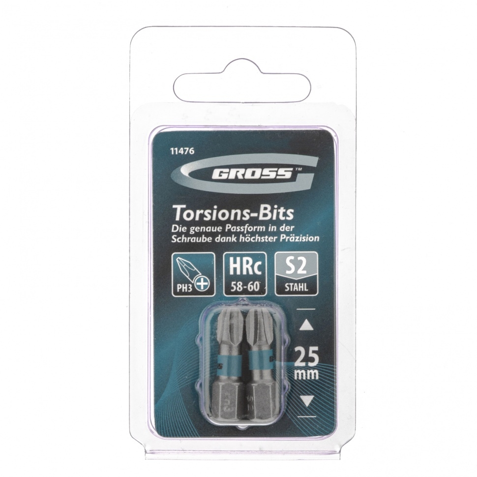 Набор бит торсионных PH3х25 мм, для ударн.шуроповертов 2шт Gross