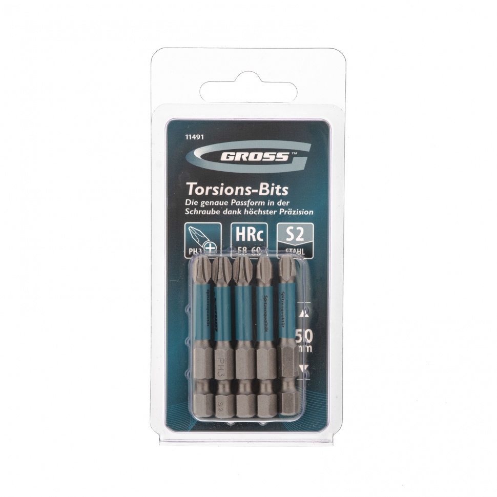 Биты торсионные PH3х50 мм, для ударн.шуроповертов 5 шт Gross