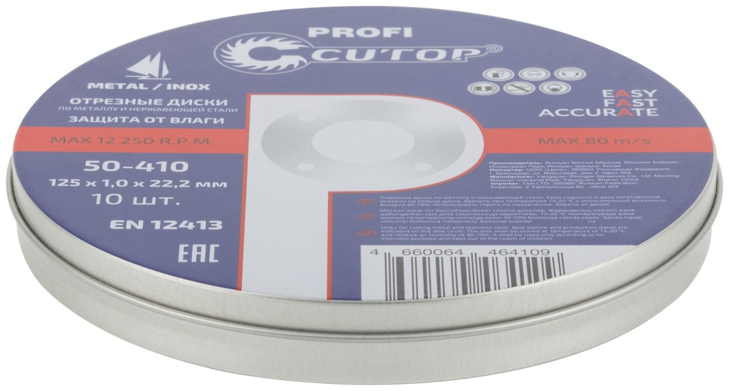 Набор дисков Проф отрезной по мет и нерж.стали Т41-125х1,0х22,2 мм 10 шт