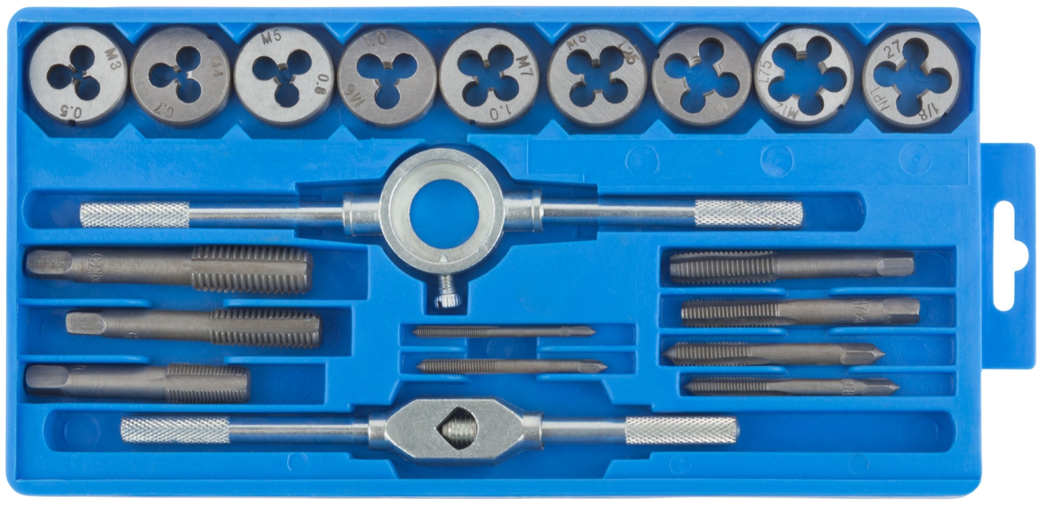 Набор метчиков и плашек для мягкого металла 20 шт пластик. кейс