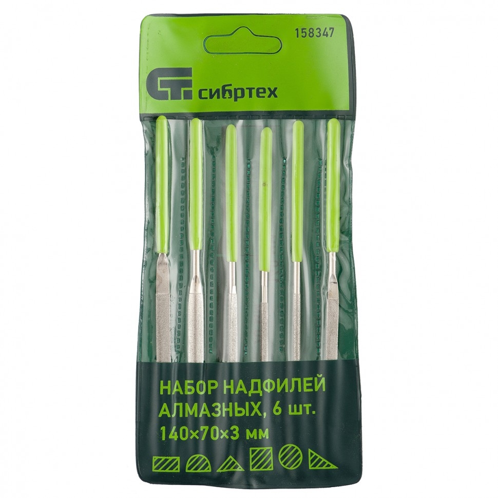 | Набор надфилей алмазных 140х50х3 мм 6шт. Сибртех | 158317 | 1 шт. |