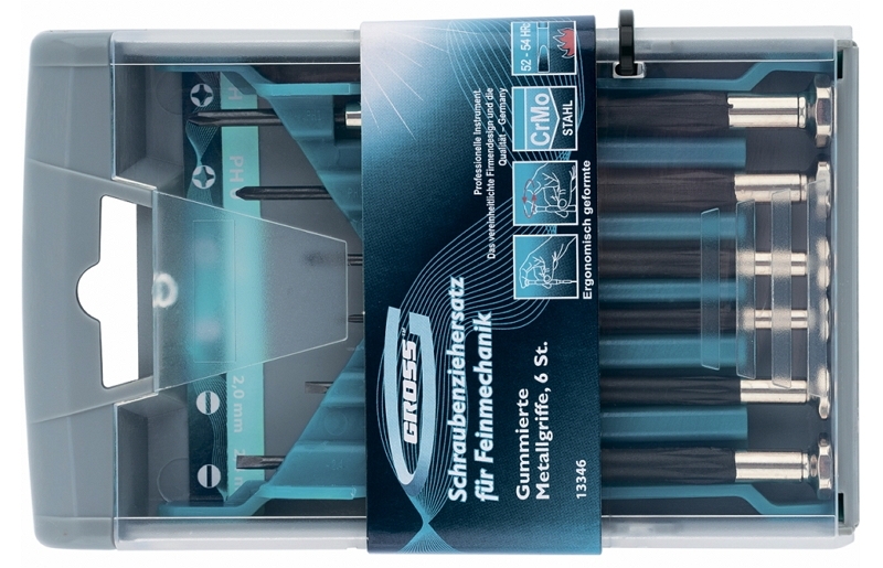 Набор отверток для точной механики 6 шт, CrMo, металл, обрезиненные рукоятки, Gross