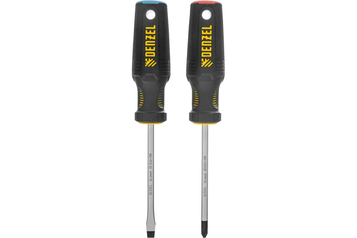 Набор отверток с трехкомпонентными рукоятками PH+SL S2 2 шт S2 Denzel