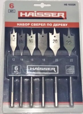 Набор сверл по дереву перовых 12,14,16,18,20,22 мм 6 шт.