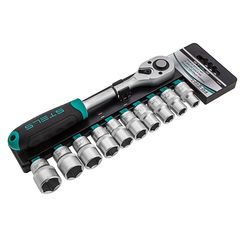 Набор торцевых головок с трещоточный ключом 11 шт 3/8 10-22мм Stels