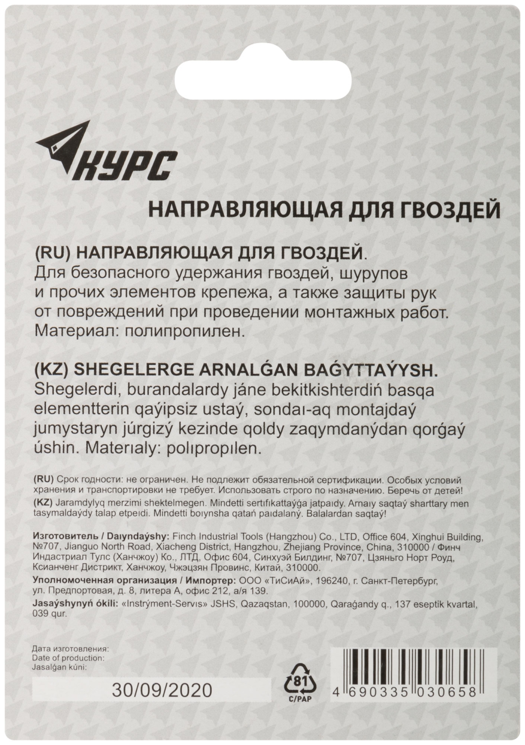 Для безопасного удержания гвоздей при проведении монтажных работ. Направляющая имеет два отверстия: первое для крепежа диаметром от 1,5 мм до 5 мм, второе – для крепежа диаметром от 1 мм до 7 мм. Материал: полипропилен. Упаковка: блистер.