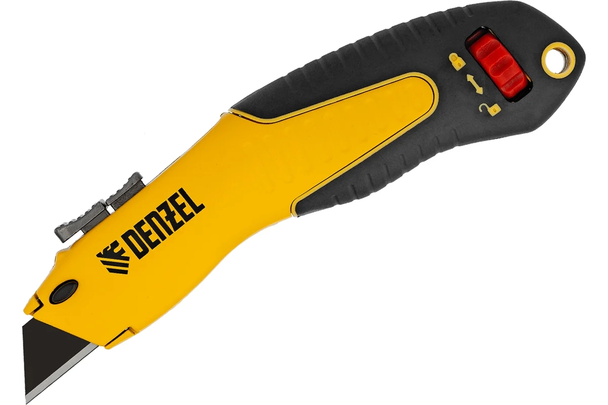 Нож 19 мм сменное трапециевидное лезвие SK4, алюминиевый корпус Denzel