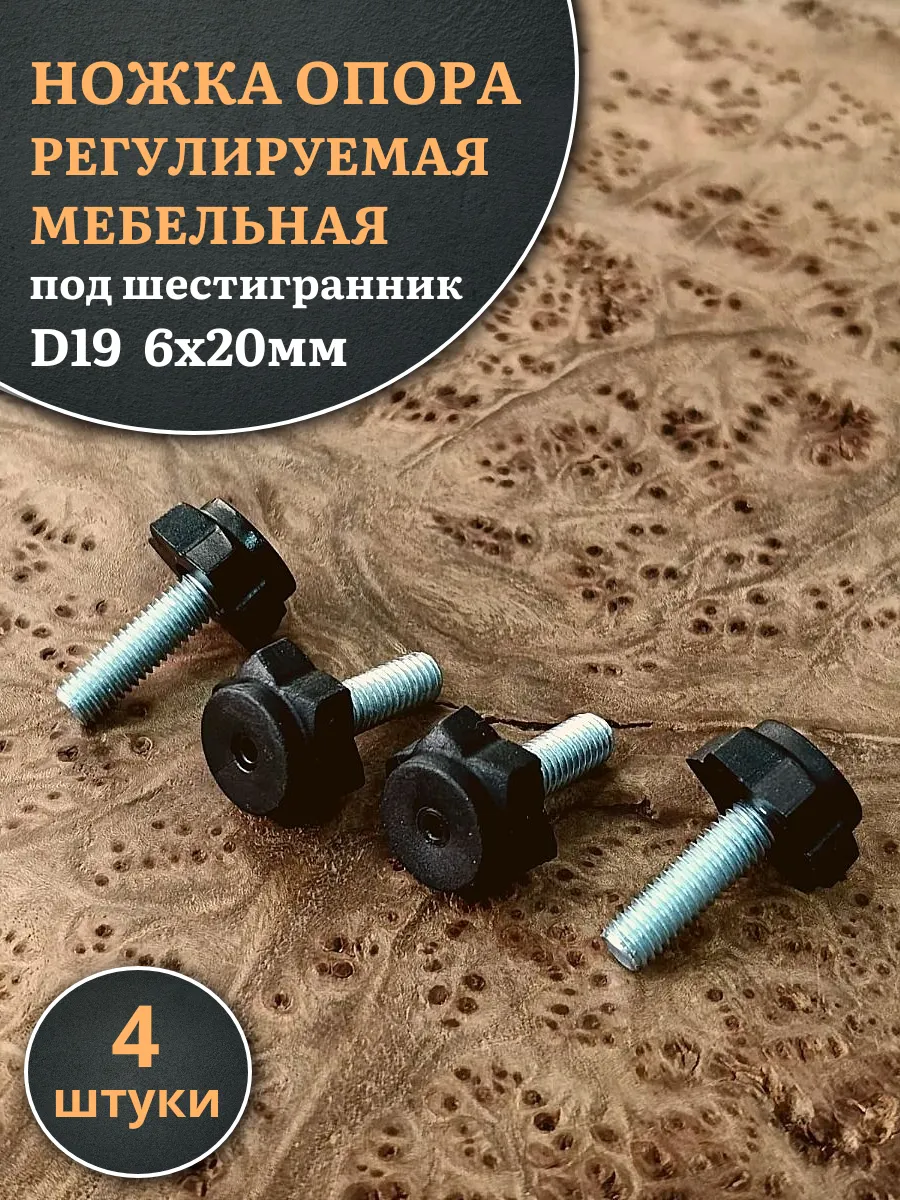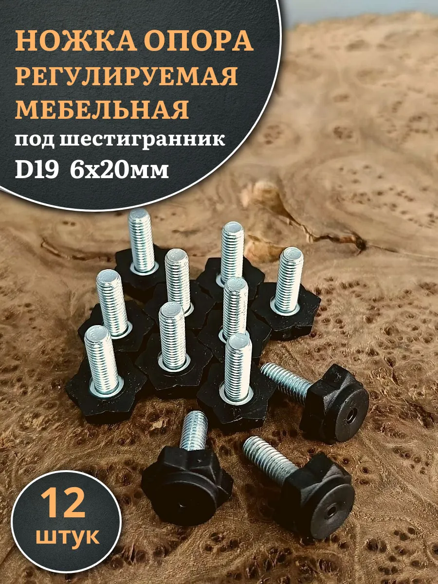 | Ножка опора D19 М6х20 регулируемая мебельная под шестигранник 12 шт | 33-0105ф12 | 1 шт. |