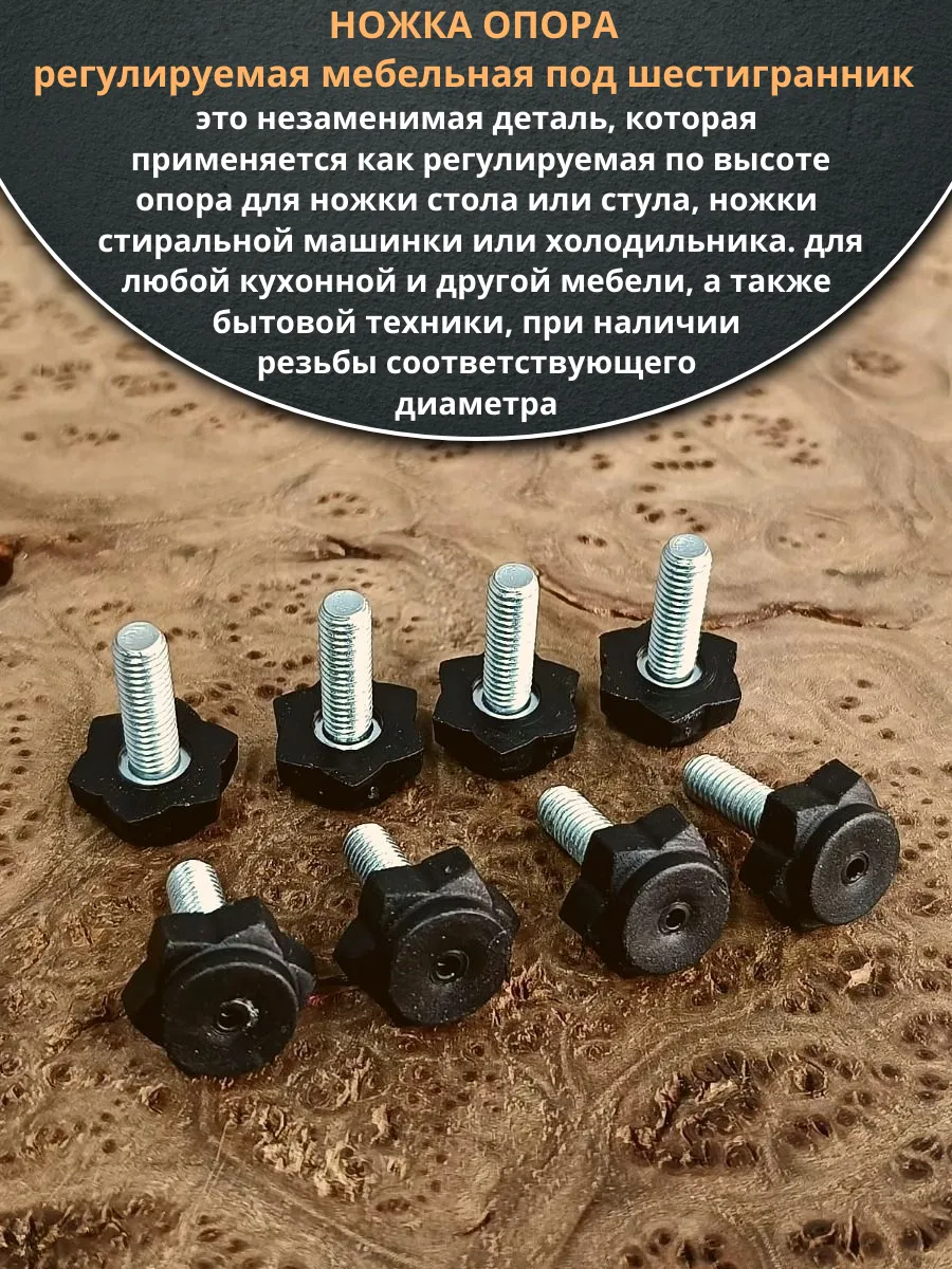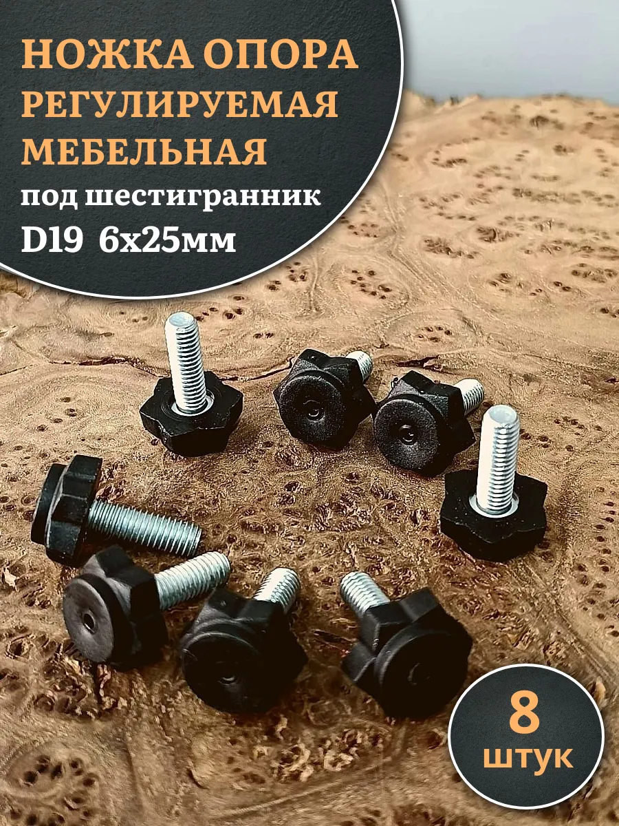 | Ножка опора D19 М6х25 регулируемая мебельная под шестигранник 8 шт | 33-0110ф8 | 1 шт. |