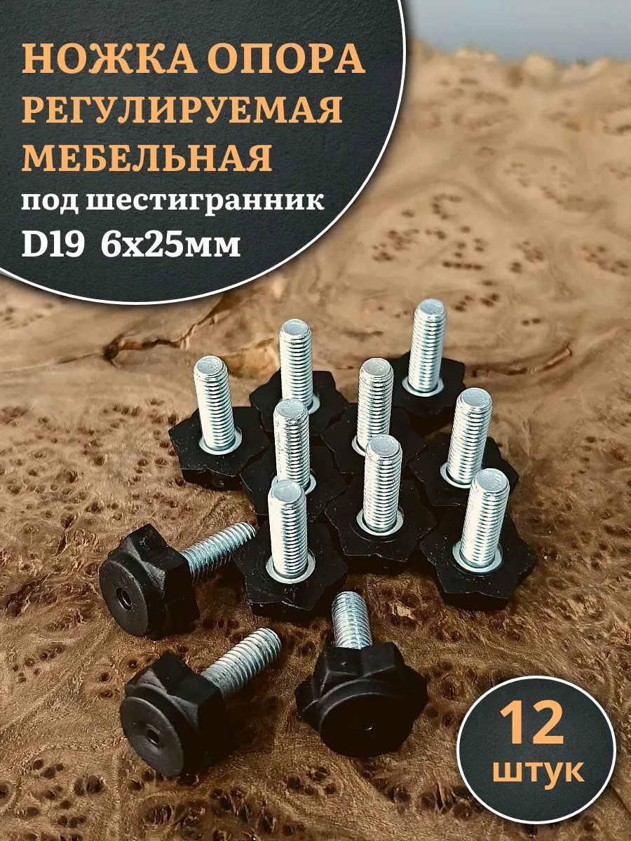 | Ножка опора D19 М6х25 регулируемая мебельная под шестигранник 12 шт | 33-0110ф12 | 1 шт. |