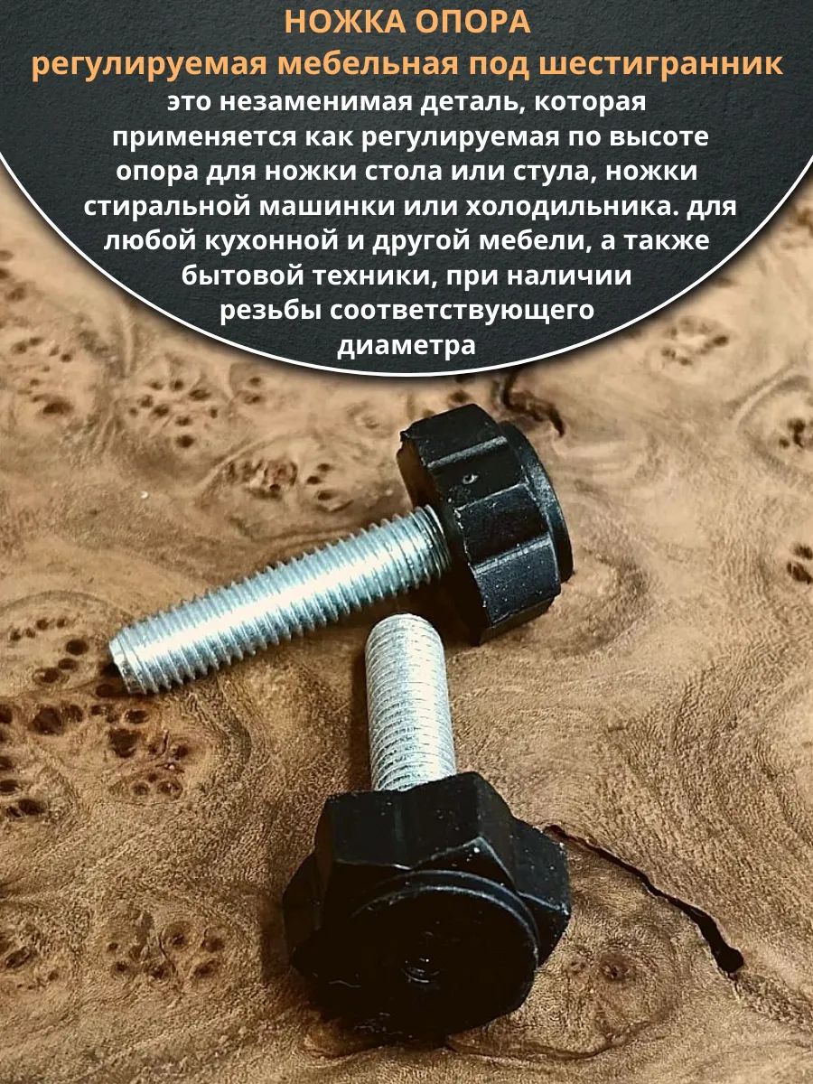 | Ножка опора D22 М10х30 регулируемая мебельная под шестигранник 12 шт | 33-0150ф12 | 1 шт. |