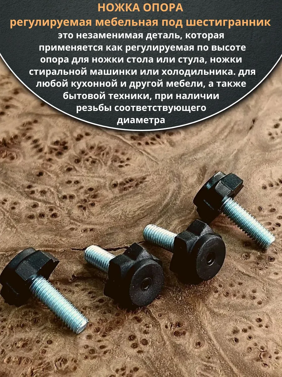 | Ножка опора D22 М8х25 регулируемая мебельная под шестигранник 4 шт | 33-0120ф4 | 1 шт. |