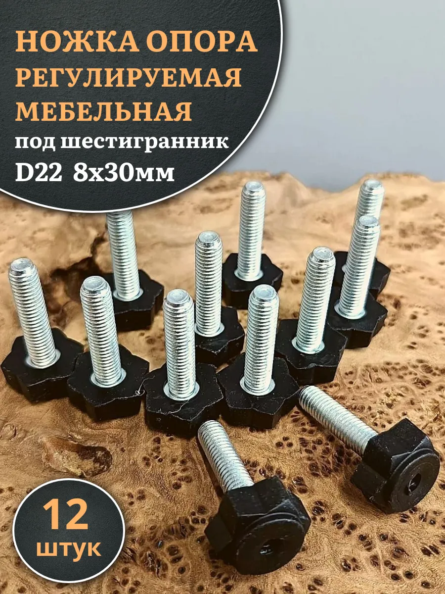 | Ножка опора D22 М8х30 регулируемая мебельная под шестигранник 12 шт | 33-0130ф12 | 1 шт. |