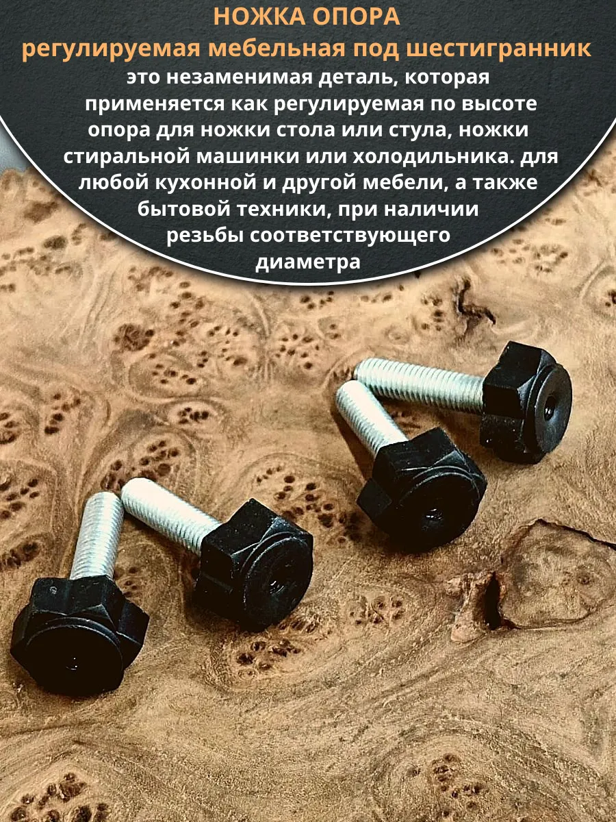 | Ножка опора D22 М8х30 регулируемая мебельная под шестигранник 4 шт | 33-0130ф4 | 1 шт. |