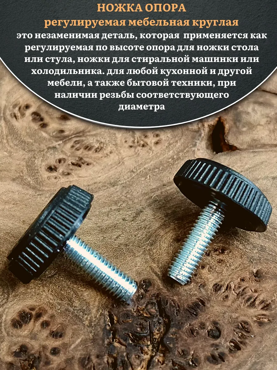 Ножка опора D25 М8х20 регулируемая мебельная круглая 4 шт