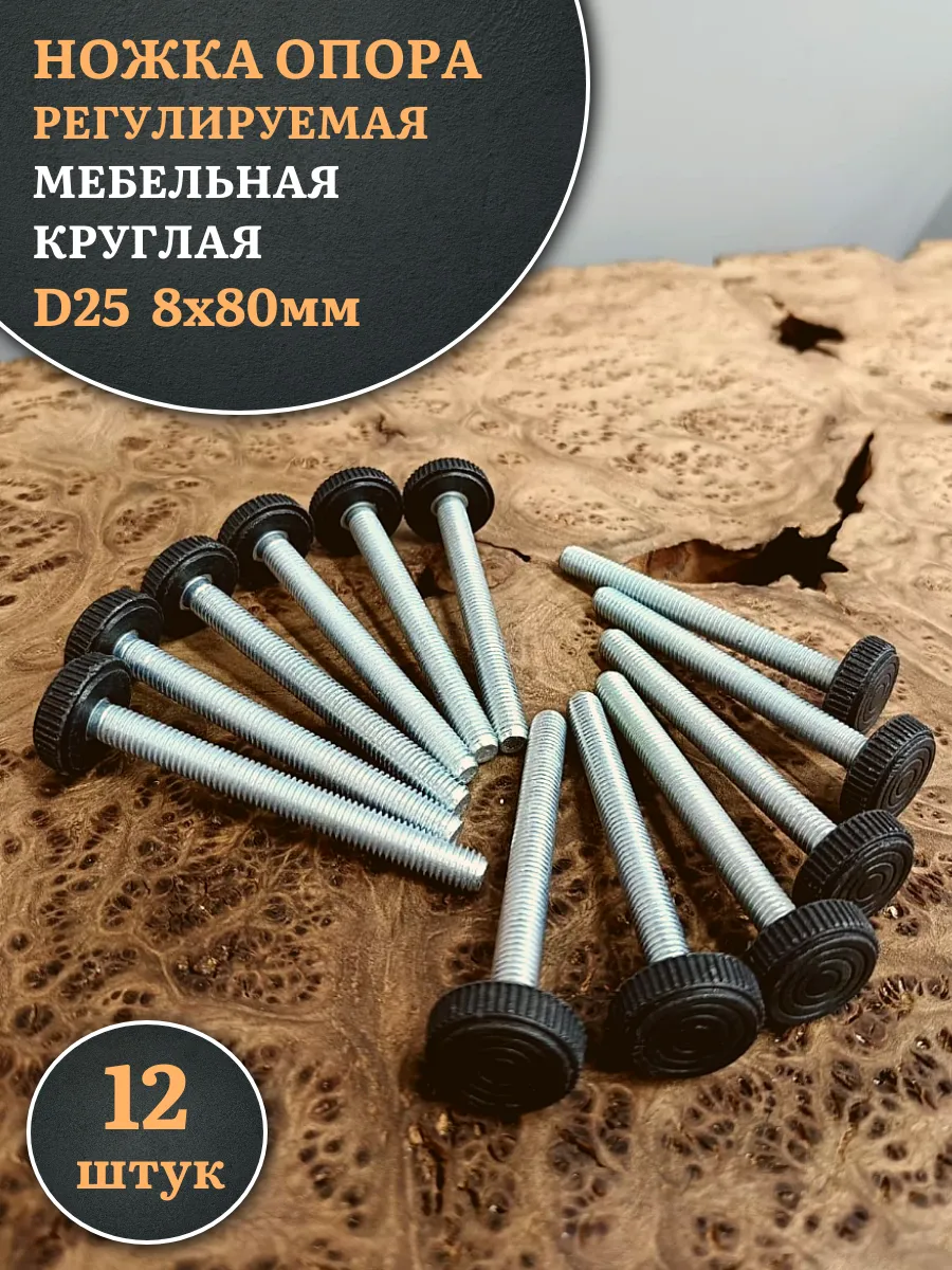 Ножка опора D25 М8х80 регулируемая мебельная круглая 12 шт