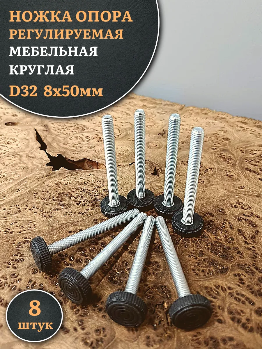 Ножка опора D32 М8х50 регулируемая мебельная круглая 8 шт