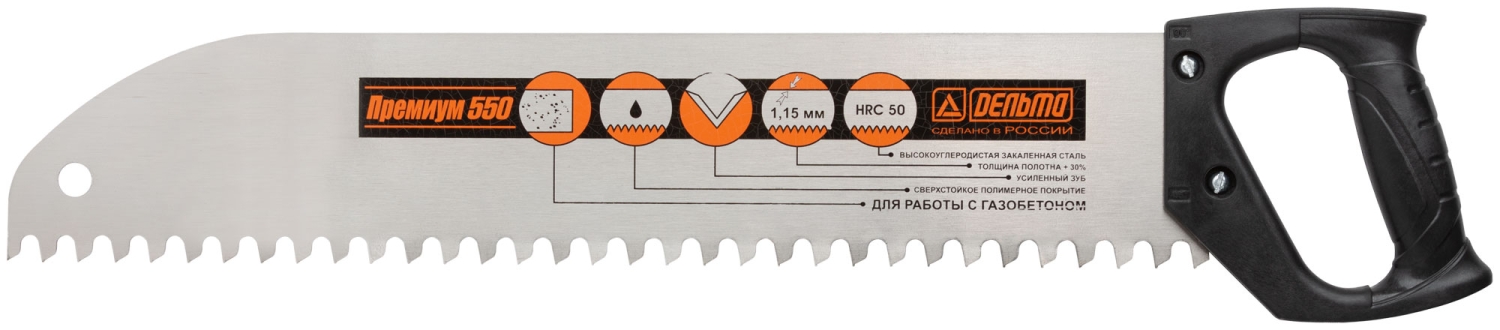 Ножовка по пенобетону Дельта (Премиум), закругленное полотно, усиленный зуб (шаг 16мм), 550мм(10110)