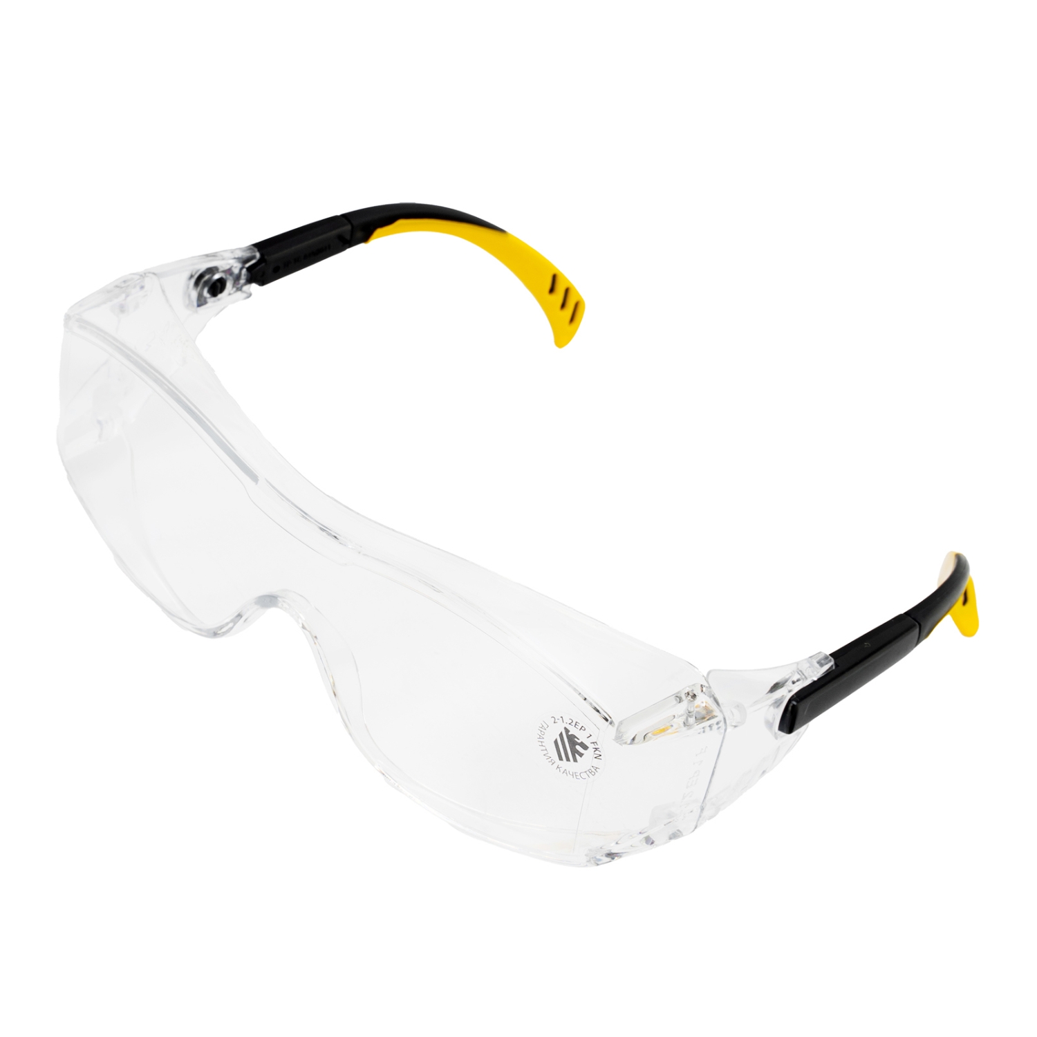 Продуманная конструкция — особая форма линз обеспечивает боковую и надбровную защиту, а также позволяет носить защитные очки вместе с коррригирующими.
