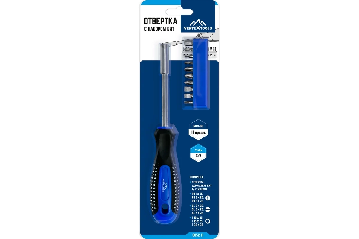 Отвертка с набором бит 11 предметов VERTEXTOOLS