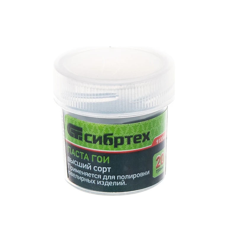 Паста ГОИ №3 баночка 20 гр. Сибртехиспользуется как для ручной полировки тканью, так и для машинной с помощью дрели или шлифмашины со специальной насадкой. Универсальная паста подходит для работы с ювелирными изделиями, металлом, пластиком и стеклом. Благодаря ей можно защитить поверхности от механических повреждений, исправить косметические дефекты и придать им зеркальный блеск.