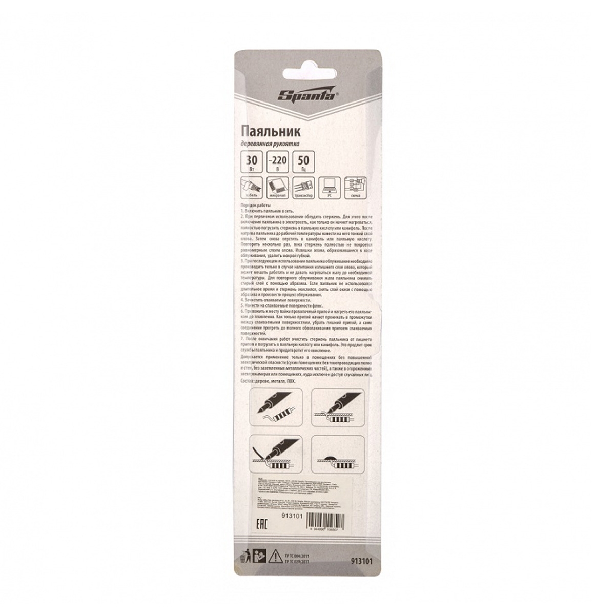 Паяльник с деревянной ручкой 30 Вт, Sparta