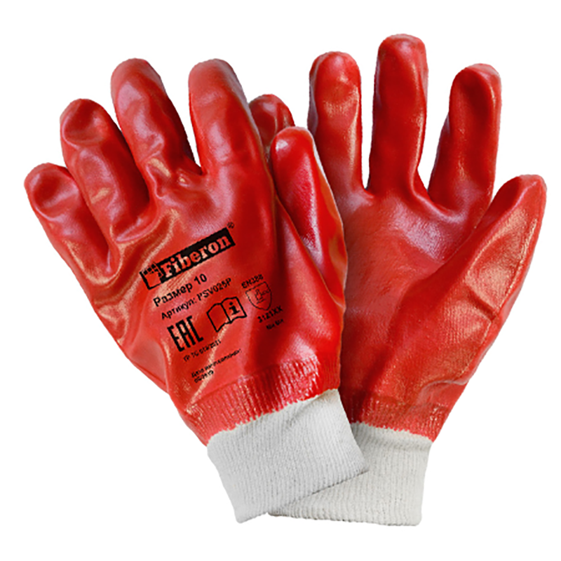 Перчатки Стойкость к загрязнениям Гранат хлоп.полиэст. PSV025P ПВХ-покр., размер 10 (ХL), Fiberon