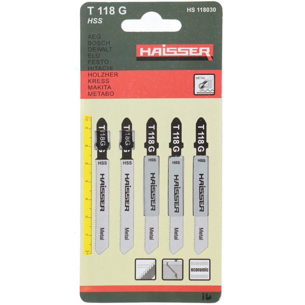 Пилки Haisser HS118030 подходят для работы с электролобзиками AEG, Bosch, Dewalt, Festo, Hitachi, Holzher, Kress, Makita, Metabo и других марок. Пилки предназначены для разрезания тонкой стали, алюминия и цветных металлов.
