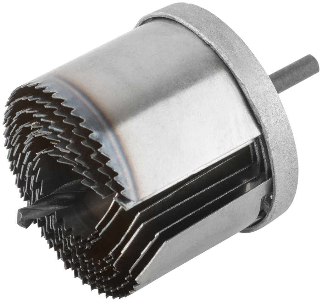 Пилы круговые с каленым зубом 2" для высверливания отверстий в древесине твер-дих и мягких пород, ДСП и фанере. В наборе 7 пил круговых: 26, 32, 38, 45, 50, 56 и 63 мм. Материал: инструментальная сталь. Упаковка: блистер