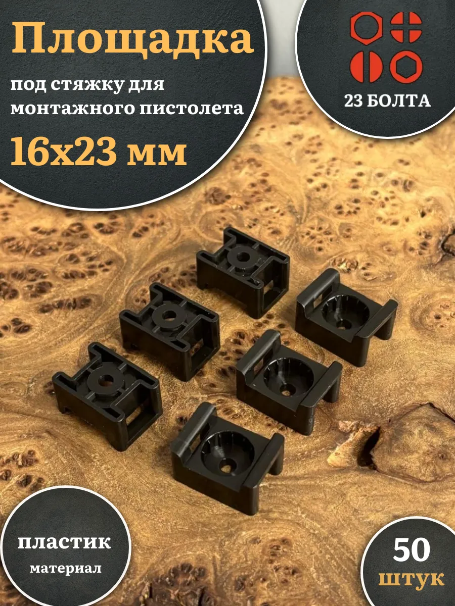 Площадка под стяжку для монтажного пистолета 16х23 мм черная, 50 шт.