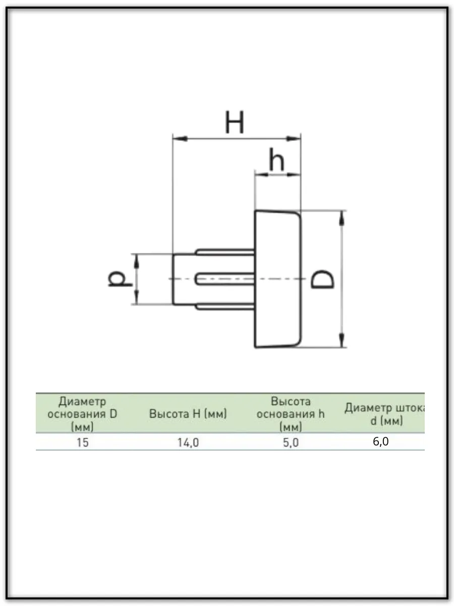 | Подпятник гриб мебельный d 15 мм под отверстие 6 мм, 50шт | 18-0205ф50 | 1 шт. |