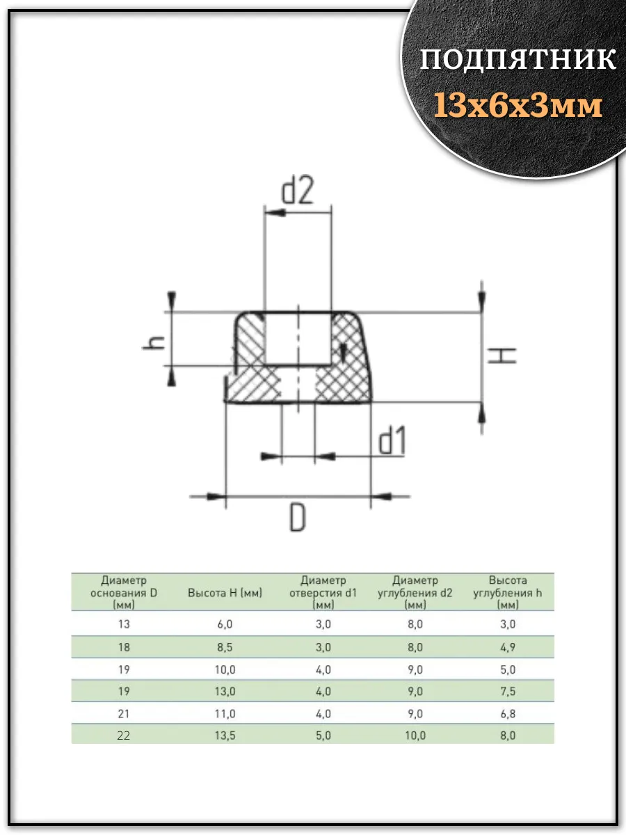 | Подпятник круглый мебельный с отверстием 13х6х3 мм, 50 шт | 18-0215ф50 | 1 шт. |