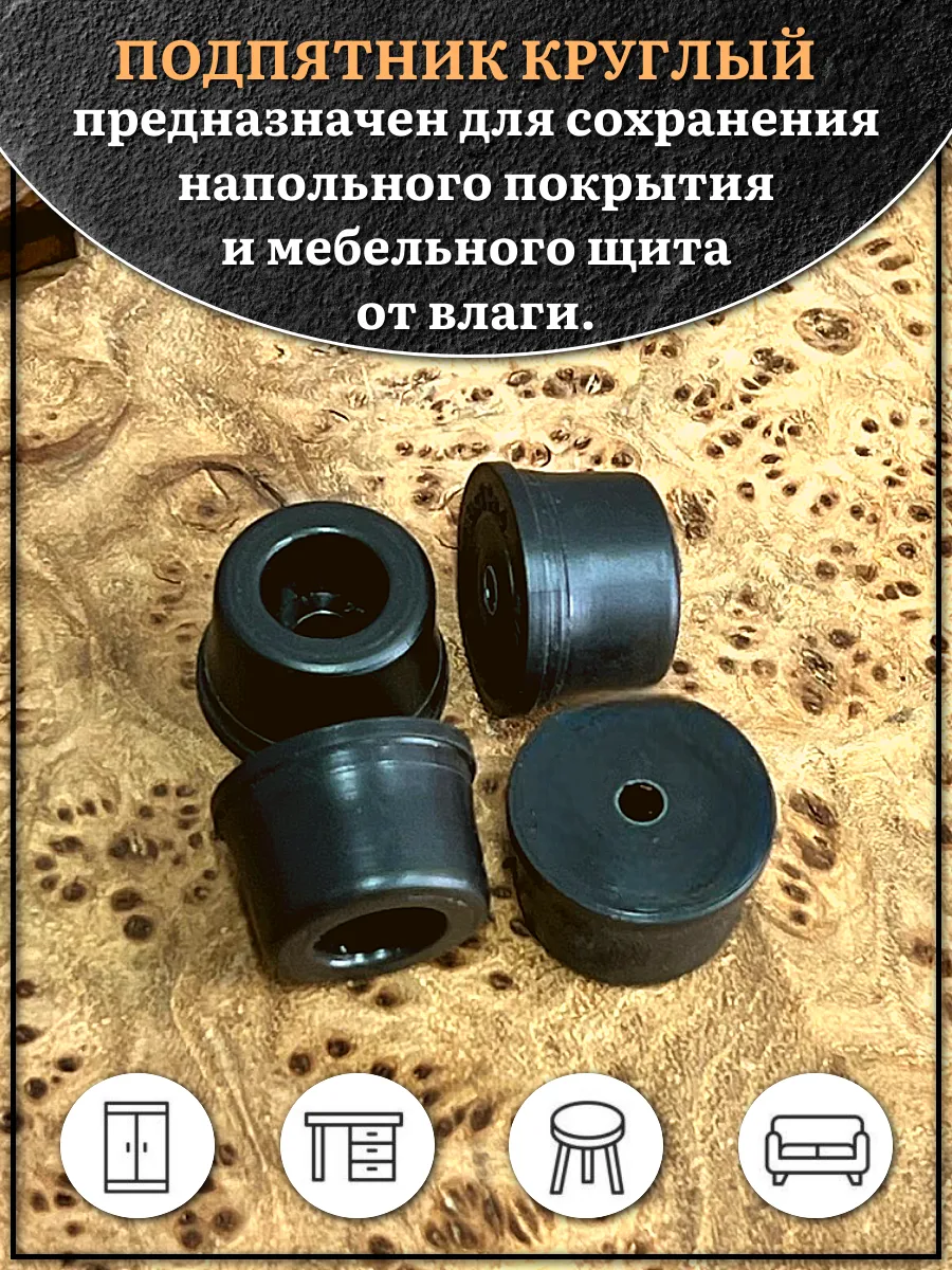 | Подпятник круглый мебельный с отверстием 21х11х4 мм, 30 шт | 18-0230ф30 | 1 шт. |