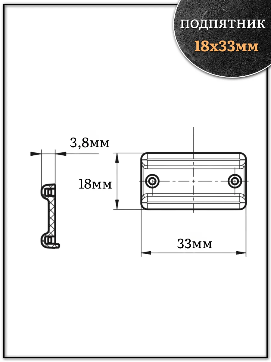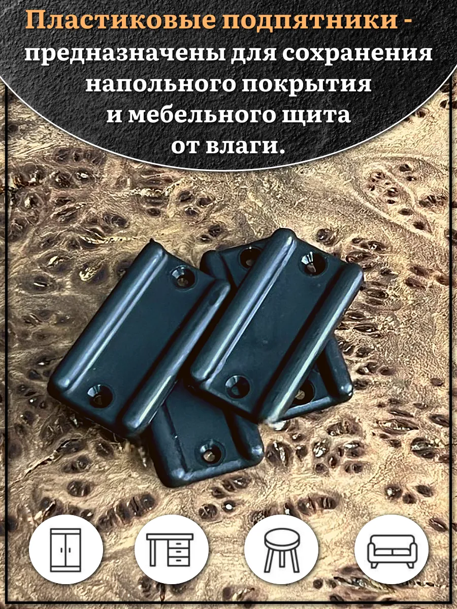 Подпятник (опора) прямоугольный под торец ДСП 18х33 мм 4 шт